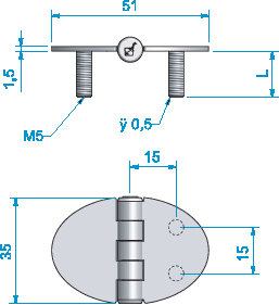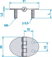 Gångjärn, oval m fast skruv 51x35x15 mm
