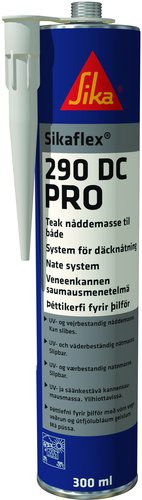 Sikaflex-290 DC PRO är en enkomponents, polyuretanbaserad tätningsmassa speciellt utvecklad för däcksnåtning av traditionella trädäck. Den uppvisar utmärkt väderresistens och är därför lämplig för exponerade öppna fogar i marinmiljö. Massan härdar och bildar en permanent elastisk fog vilken är snabbt och enkelt slipbar. Sikaflex-290 DC PRO möter kraven satta av International Maritime Organisation (IMO). Används tillsammans med SikaPrimer (102946) och Sikaflex-298 däcksmassa för limning av planken eller av hela sittbrunnssatser i teak. 300 ml räcker till ca 12 lpm vid nåtning av 5 x 5 mm notspår, utan spill. Sikaflex-290i DC och Sikaflex-290 DC PRO ej får kombineras i samma nåt på grund av produkternas olika kemiska egenskaper!