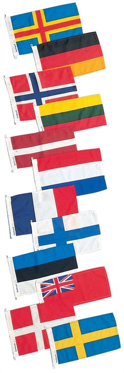 Danmarksflagga i 2 storlekar. Levereras i blisterförpackning.