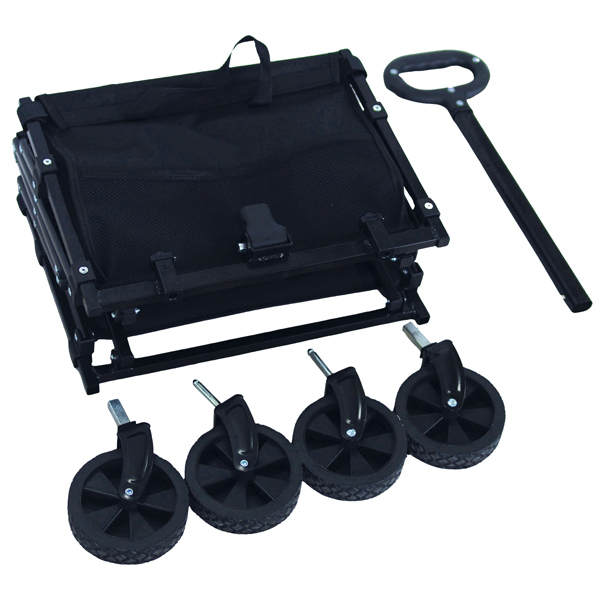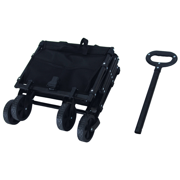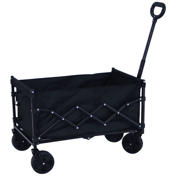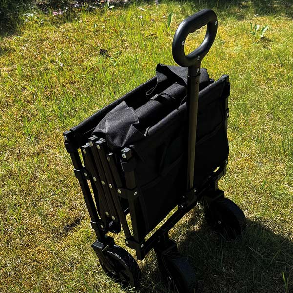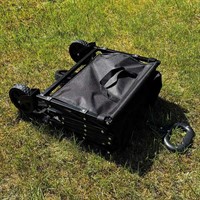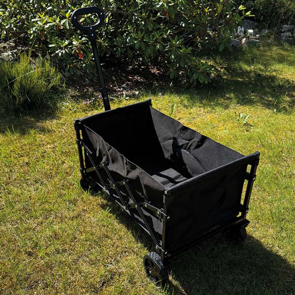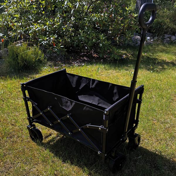Denna skrinda är en praktisk lösning för transport av gods och utrustning, och är tillverkad med en stabil pulverlackerad stålkonstruktion som garanterar hållbarhet över tid. \nMed en enkel fällmekanism tar vagnen minimal plats under förvaring. Hjulen och handtaget kan också tas bort för ytterligare platsbesparing. \n\nMaterialet i själva transportdelen är tillverkat av slitstark 600D polyester, som tål tunga belastningar och är lätt att rengöra. \n\nFunktioner: Hopfällbar, avtagbara hjul och handtag