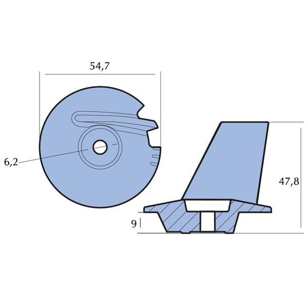 Roderfena i zink till Tohatsu-motor 140 hk.\n \nLevereras av Europas största zinkleverantör, Tecnoseal från Italien.